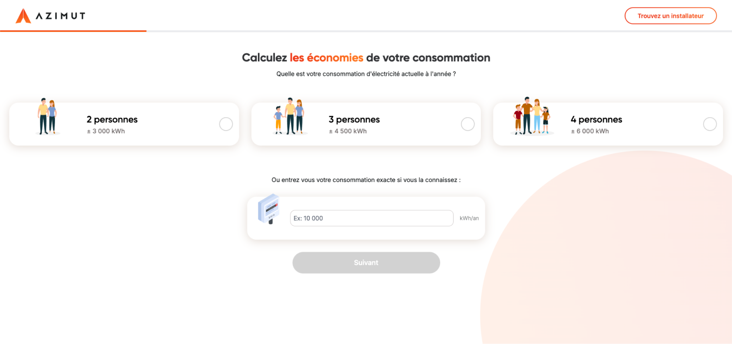 Découvrez en quelques clics tout le potentiel de votre installation solaire avec notre simulateur en ligne. Il vous permet de calculer vos économies, d’estimer votre production d’énergie et de voir combien vous pouvez gagner avec une batterie intelligente Azimut. Essayez-le maintenant et obtenez un devis personnalisé adapté à vos besoins énergétiques.
